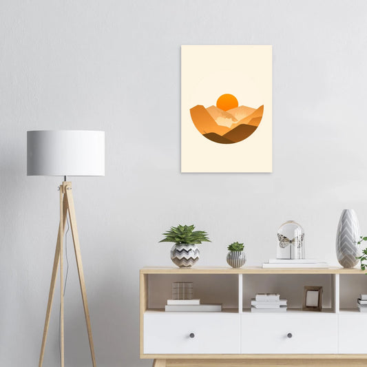 Warme Gelaagde Bergen Zonsopkomst in Minimalistisch Cirkelontwerp
