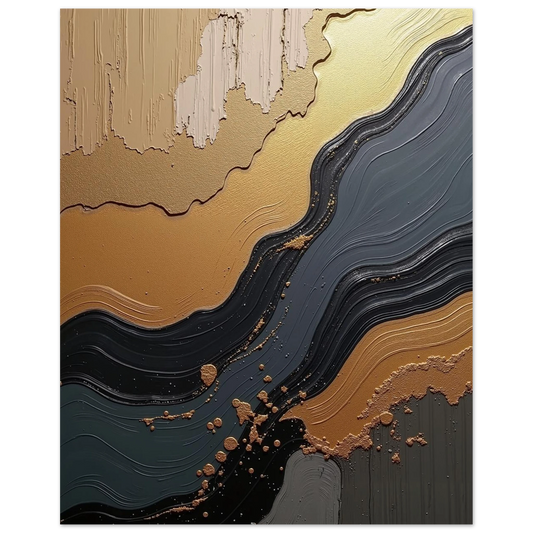 Elegante Zwarte en Gouden Vloeibare Golven Abstract