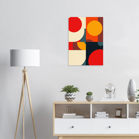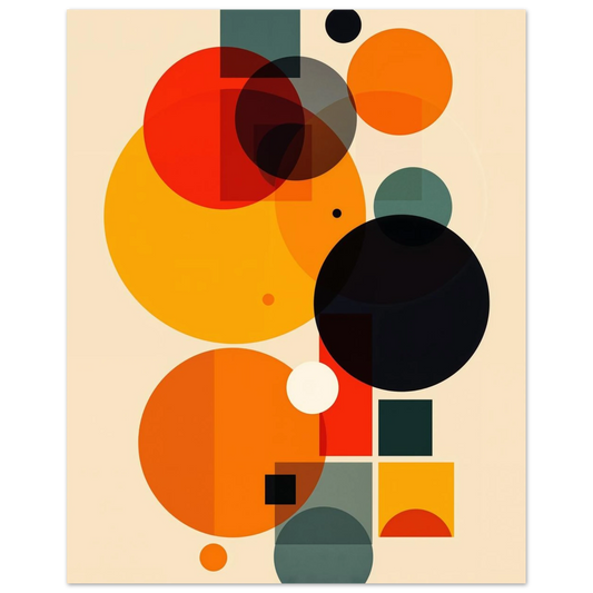 Levendige Mid-Century Geometrische Kunst met Cirkels en Rechthoeken