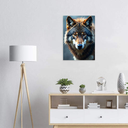 Amberen Blik: Hyperrealistisch Wolvenportret AI Kunstwerk