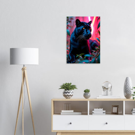 Neonverlichte Zwarte Panter te Midden van Junglebegroeiing