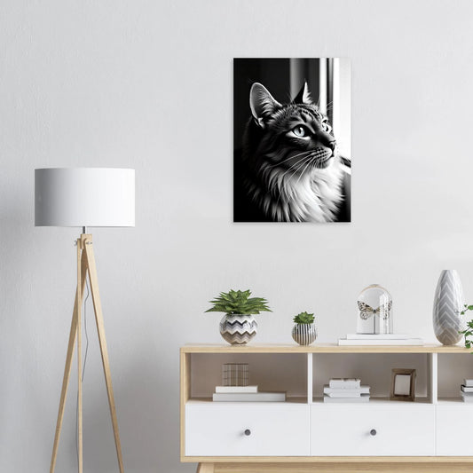 Intense Zwart-Wit Kat Portret met Zacht Raamlicht