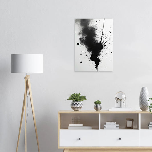 Monochrome Inktvlekken en Rookachtige Cirkel Abstracte Kunst