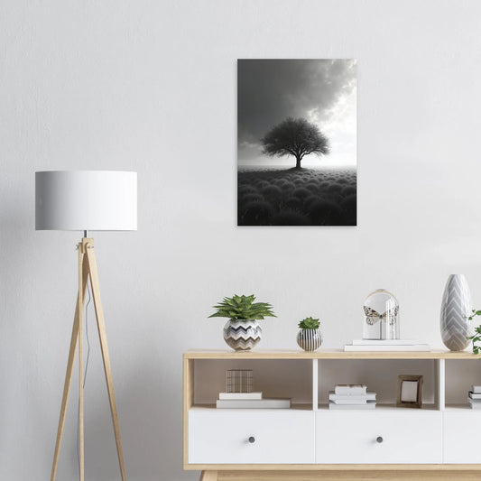 Sfeervol Zwart-Wit Stillevenslandschap met Eenzame Boom