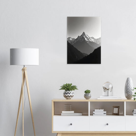 Majestueus Sneeuwbedekt Berglandschap in Zwart-Wit