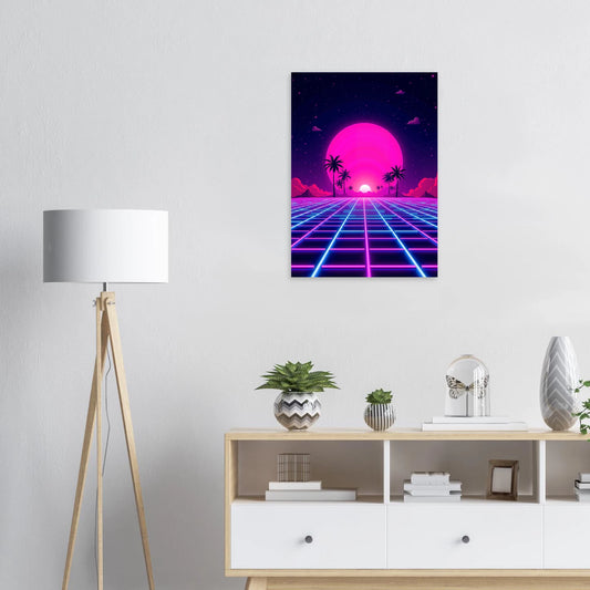 Neon Raster Zonsondergang: Retro Palm Paradijs