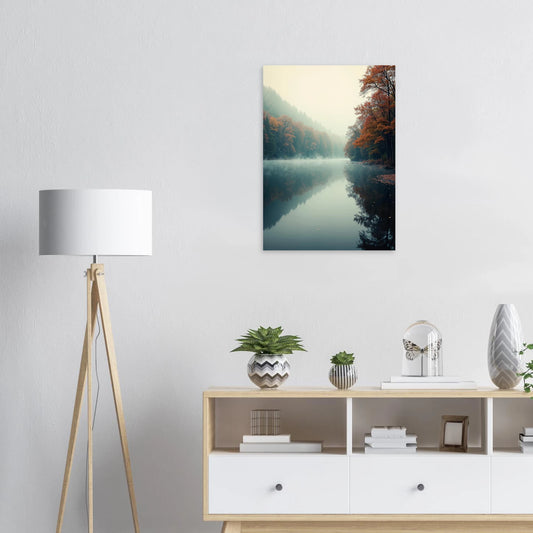 Misty Autumn Lake with Serene Forest Reflection