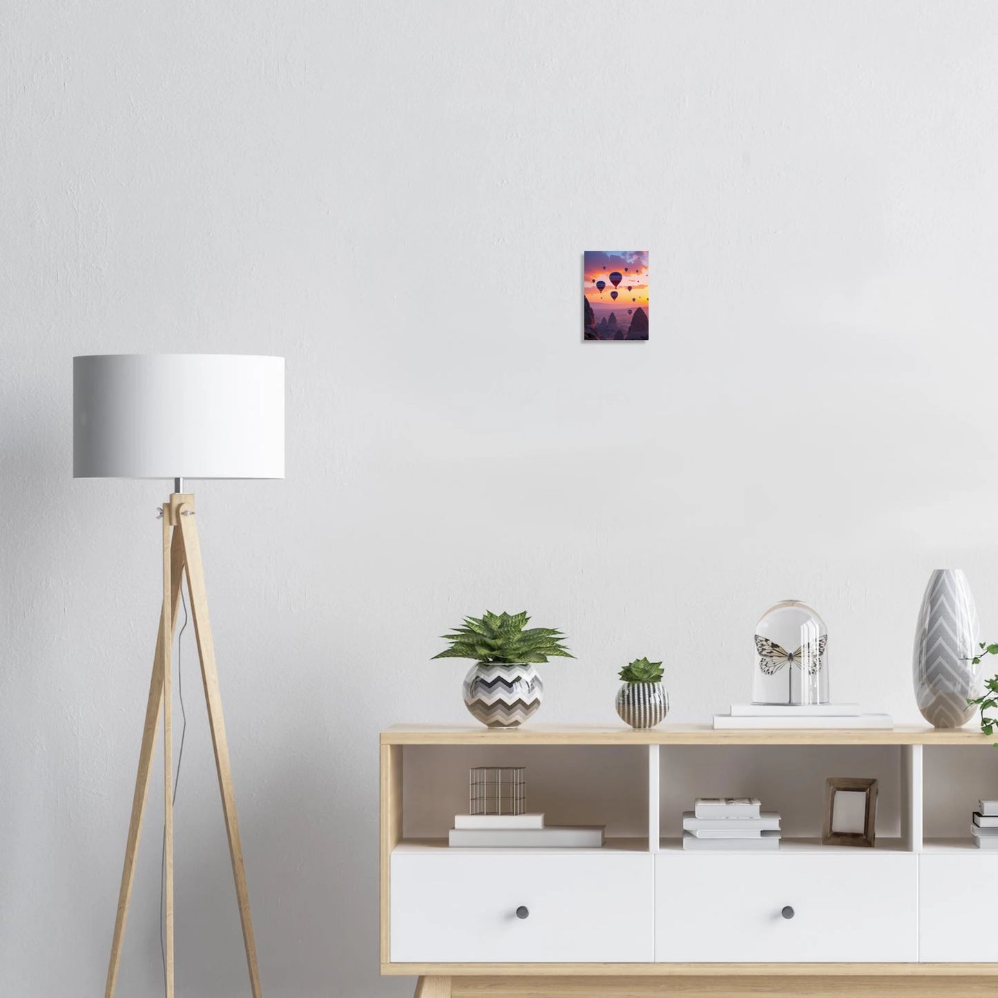 Beleef de adembenemende pracht van talloze kleurrijke luchtballonnen die majesteitelijk drijven boven de iconische rotsformaties van Cappadocië bij zonsopgang. Dit realistische en sfeervolle landschap vangt de harmonieuze mix van helder oranje, diep paars, hemelsblauw en aardetinten, en roept een gevoel van avontuur en rust op. Perfect voor reisliefhebbers en liefhebbers van schilderachtige uitzichten, brengt dit kunstwerk de magie van het unieke Turkse landschap in uw woonruimte.